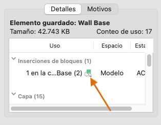 - Seleccione la definición de bloque en la vista en árbol que desee previsualizar y localizar en el dibujo actual.