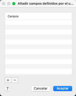 Muestra los campos definidos por el usuario disponibles.