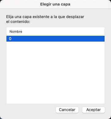 Muestra las capas disponibles en el dibujo actual con las que se pueden fusionar las capas seleccionadas en la paleta Capas. Todos los objetos de las capas seleccionadas de la paleta Capas se desplazan a la capa especificada y, a continuación, se eliminan del dibujo.