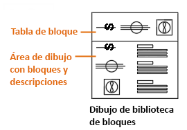 Puede organizar un conjunto de definiciones de bloque relacionadas creando los bloques en el mismo archivo de dibujo. Los archivos de dibujo que se utilizan de esta manera se denominan bibliotecas de bloques o símbolos. Estas definiciones de bloque se pueden insertar individualmente en cualquier dibujo. Los dibujos de las bibliotecas de bloques sólo se diferencian de los demás archivos de dibujo en la forma en que se utilizan.