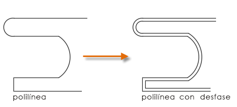 Por ejemplo, si desfasa un círculo o un arco, se crea un círculo o un arco mayor o menor en función del lado que especifique para realizar el desfase. Si aplica desfase a una polilínea, el resultado es una polilínea paralela a la original.