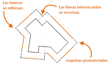 La variable de sistema OFFSETGAPTYPE determina si las esquinas alargadas son nítidas, empalmadas o achaflanadas.