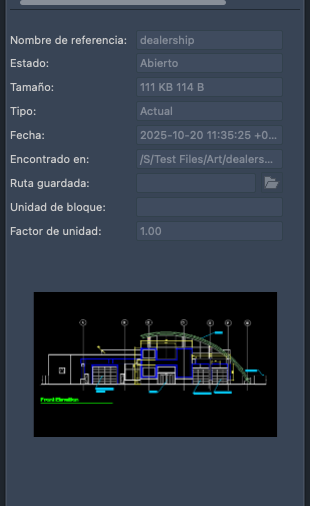 Si se selecciona un archivo DWG de referencia (refX), se mostrarán propiedades adicionales. No es posible editar ninguna de estas propiedades de imagen adicionales.