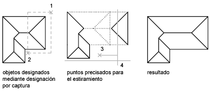 Para estirar un objeto, es preciso especificar un punto base para el estiramiento y, a continuación, un punto de desplazamiento.