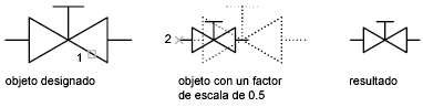 Un factor de escala superior al valor 1 amplía el objeto. Un factor de escala entre 0 y 1 reduce el objeto.