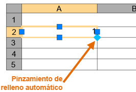 Por ejemplo, es posible introducir las fechas de una columna de fechas de una tabla escribiendo la primera fecha necesaria y arrastrando el pinzamiento de relleno automático.