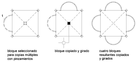 Por ejemplo, utilizando la opción Copiar, podrá girar los objetos seleccionados, dejando copias en cada posición especificada con el dispositivo señalador.