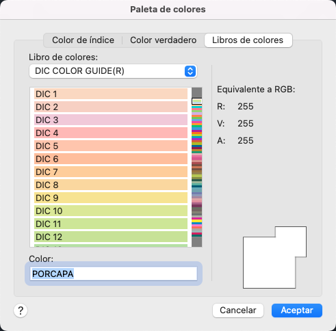 Al seleccionar un libro de colores, en la ficha Libros de colores aparece el nombre del libro seleccionado.