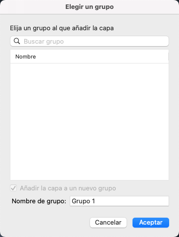 Muestra los grupos de capas a los que se pueden añadir las capas seleccionadas.