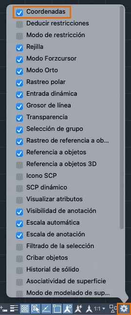 Para modificar la visualización de las coordenadas en la barra de estado