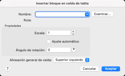 Si el bloque tiene atributos asociados, se muestra un cuadro de diálogo en el que puede introducir valores de atributo.