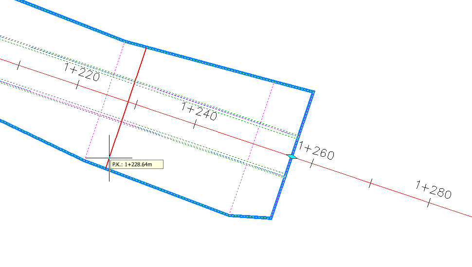 Amplíe y haga clic en el P.K. (o escriba el valor de P.K.) donde desea dividir la región.