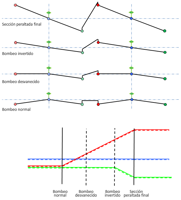 Para obtener más información sobre los diagramas de peralte, consulte Acerca de los métodos de giro del eje de rotación de peralte.
