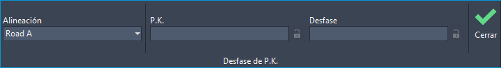 Active la barra de herramientas de comandos transparentes y seleccione Desfase de P.K.