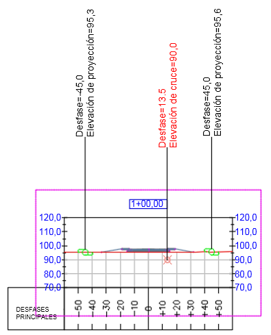 En la siguiente ilustración se muestran proyecciones a ambos lados de la obra lineal al nivel del suelo existente, además de un cruce por debajo del nivel del suelo.