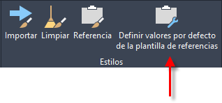 Este cuadro de diálogo se muestra cuando se selecciona la casilla Valores por defecto de la plantilla de referencias en la ficha Administrar. El comando Valores por defecto de la plantilla de referencias solo está disponible en la cinta de opciones cuando se trabaja en un archivo DWT.