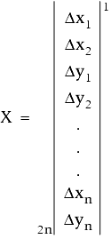 Como resultado se obtiene la matriz X, que se compones de la diferencia entre las coordenadas actuales y los valores más probables para las coordenadas: