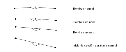 Las carreteras separadas suelen presentar dos opciones para aplicar peraltes en cada lado de la carretera.