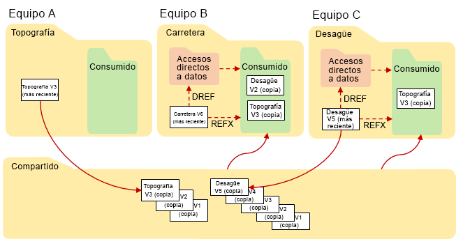 - Cada equipo utiliza una carpeta de trabajo independiente de acceso directo a datos.