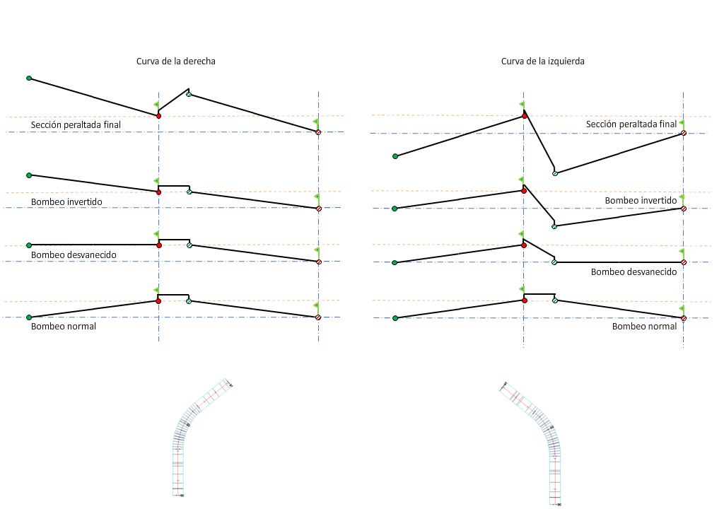 Para obtener más información sobre los diagramas de peralte, consulte Acerca de los métodos de giro del eje de rotación de peralte.