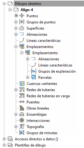 El árbol del prospector permite administrar objetos de dibujo y proyecto y acceder a ellos.