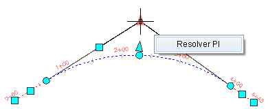 Nota: Este procedimiento es factible únicamente si la alineación muestra vértices implícitos de dos tangentes fijas unidas por una curva libre o un grupo de curvas.
