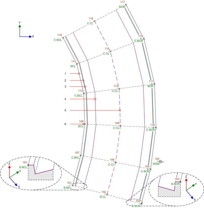 En la tabla siguiente se muestran ejemplos de elementos codificados en el campo y el código de campo asignado al elemento, así como las claves descriptivas y los prefijos de figura creados en Autodesk Civil 3D para admitir los códigos de campo: