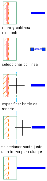 Es posible alargar una o más líneas, polilíneas abiertas o arcos de forma precisa respecto a un borde implicado de un segmento recto o curvo de cualquier objeto, o respecto a una extensión implicada de dicho segmento.