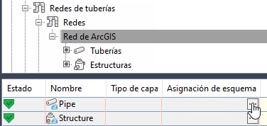 Para configurar la asignación de esquema de la red de tuberías después de la incorporación de datos de ArcGIS en un dibujo