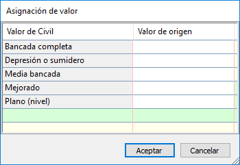 Por cada Valor de Civil que aparece en la lista, puede especificar un origen asignado al atributo ArcGIS. Si el Valor de origen se encuentra en una pieza en el origen, el Valor de Civil se aplicará a esa pieza.