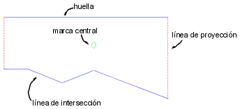 Una explanación normalmente está formada por una huella, una línea de intersección, líneas de proyección y una cara.