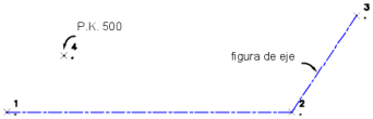 Para definir un eje, precise un nombre de figura, un P.K. inicial y un número de punto inicial.