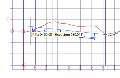Después de especificar el P.K., el programa le pide que indique una elevación. Puede mover el cursor y hacer clic para especificar la elevación.