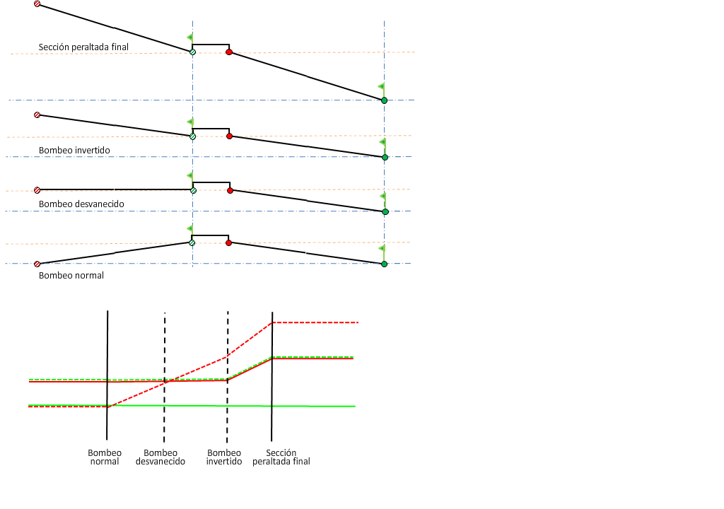 Para obtener más información sobre los diagramas de peralte, consulte Acerca de los métodos de giro del eje de rotación de peralte.