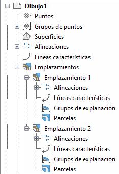 Cada colección de topología de emplazamiento contiene colecciones de alineaciones, explanaciones y parcelas: