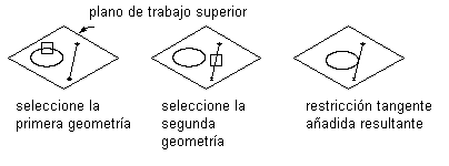 Se puede definir entre geometría curva (como un círculo o un arco) y cualquier otra geometría curva o una línea. Hace que dos curvas sean tangentes entre sí, incluso si no comparten un punto físicamente. La tangencia se utiliza normalmente para restringir una línea a un arco o a un círculo.