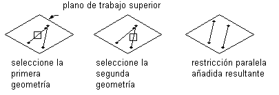 Las restricciones trabajan conjuntamente con las dimensiones para controlar la forma y el tamaño del modelo. Siempre que se modifica el modelo, la geometría conserva las relaciones entre elementos de acuerdo con las restricciones aplicadas. Las restricciones se añaden para indicar una determinada intención de diseño. Por ejemplo, se puede definir una restricción paralela entre dos líneas basada en la geometría del modelo. También es posible añadir una restricción para forzar que las dos líneas tengan la misma longitud.