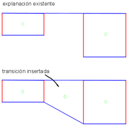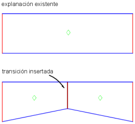 Una transición es un área que fusiona las explanaciones de las regiones de cualquiera de los lados, por ejemplo de 3:1 a 2:1.