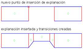- Puede seleccionar una ubicación entre dos explanaciones existentes. Los puntos inicial y final de la transición se definen mediante las líneas de proyección existentes.