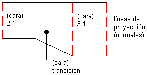 Si especifica el punto inicial de una región de explanación para comenzar dentro de una explanación existente sobre la misma huella, se le solicitará la creación de una región de transición. También puede insertar regiones de transición mediante las herramientas de creación de explanación.