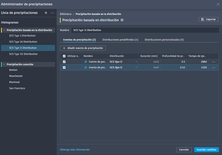 - Modifique los eventos de precipitación basada en la distribución.