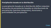 La precipitación basada en la distribución define conjuntos de eventos pluviométricos basados en la distribución de las precipitaciones (patrones temporales), la duración y la profundidad de las precipitaciones.