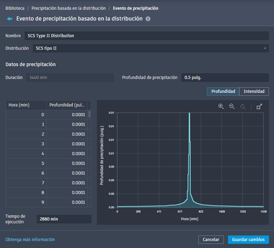 - Introduzca una profundidad de precipitación para la duración de la distribución de precipitación.