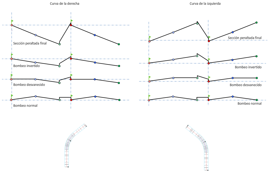 Para obtener más información sobre los diagramas de peralte, consulte Acerca de los métodos de giro del eje de rotación de peralte.