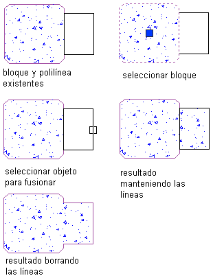 Es posible fusionar polilíneas cerradas, círculos, sombreados o bloques en un solo objeto de contorno cerrado o en una entidad de línea.