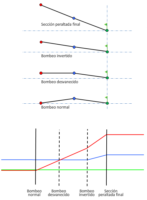 Para obtener más información sobre los diagramas de peralte, consulte Acerca de los métodos de giro del eje de rotación de peralte.