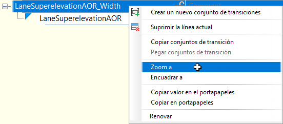 Puede hacer clic con el botón derecho en una transición o en un conjunto de transición para acceder a los comandos del menú contextual.