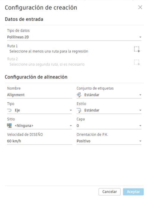 Nota: El nombre de la alineación no puede contener los siguientes caracteres no admitidos: / \ " ; = , * ? ``. Los nombres de alineación no pueden estar vacíos y deben ser únicos en el dibujo.