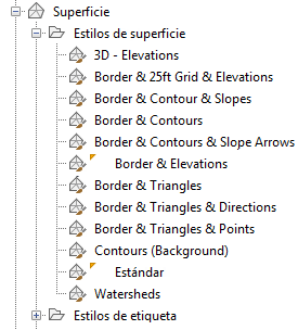 En la siguiente ilustración se muestra un ejemplo de una colección de estilos de objeto del árbol de Configuración: