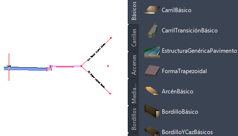 Al añadir un objeto de subensamblaje o más, como son carriles de circulación, bordillos y pendientes de talud, a una línea base del ensamblaje, se crea un objeto de ensamblaje. Así se forma el diseño de una sección de obra lineal. Los subensamblajes se suministran en un conjunto de catálogos.